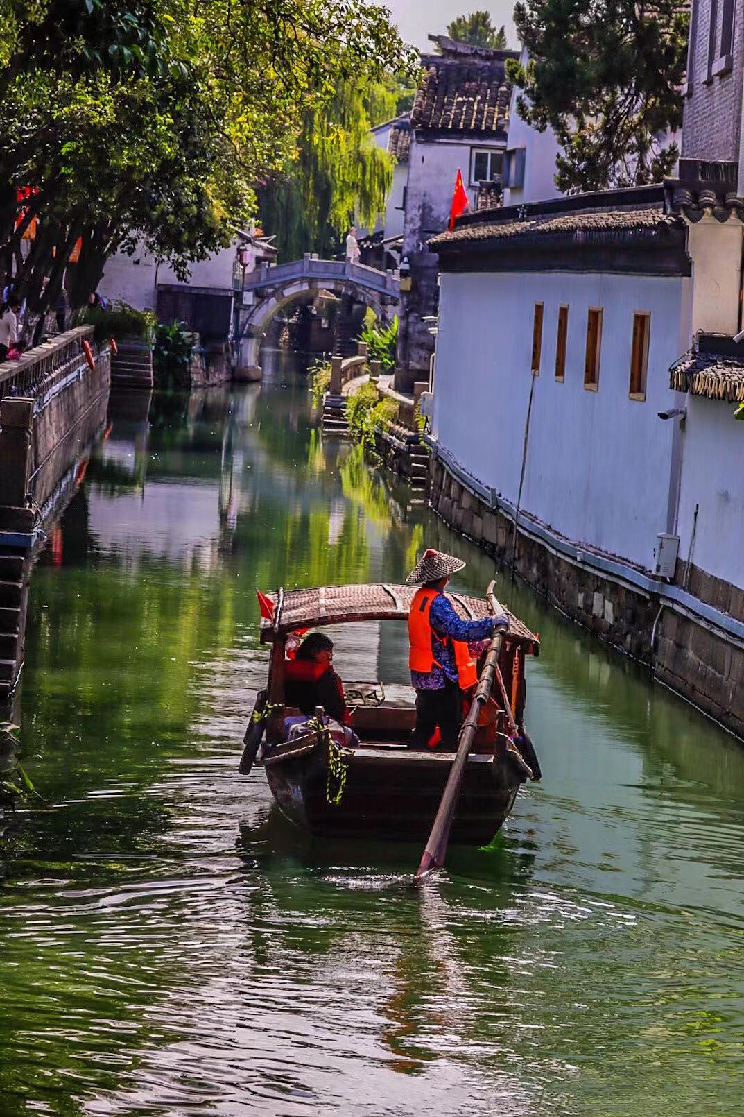 Visitors appreciating the tranquility of Pingjiang Road by boat, 2021. [Photo by Bruce Connolly/chinadaily.com.cn]