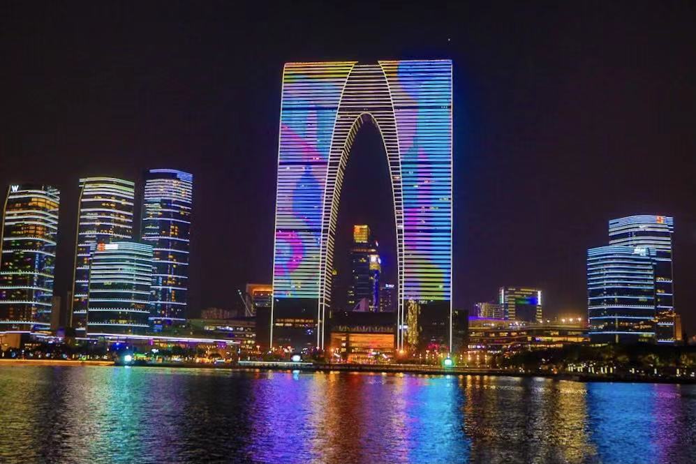 There were so many images to capture including a brightly lit 120-meter-high Ferris wheel overlooking the lake and spectacular Gate of the Orient. The latter, just over 300 meters high, completed in 2016, stands precisely on an east-west axis symbolically connecting the Suzhou old town with the west bank of Jinji Lake. The scene was enhanced by a steadily changing digital lighting show on the buildings. Spectacular when viewed from the boat, this Suzhou was one I could never have anticipated back in 1996.
